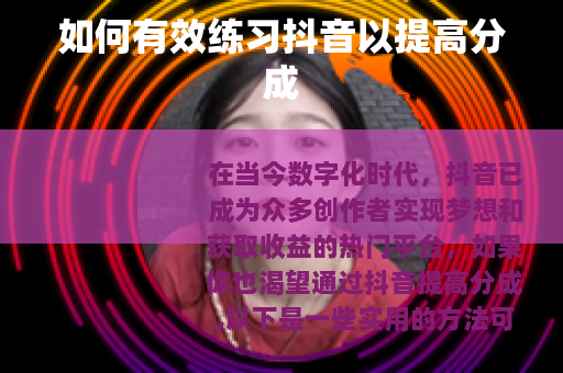 通过以上这些方法的不断实践和优化,你就能够在抖音平台上不断提升自己的影响力,进而提高分成,实现自己的创作价值和经济目标。