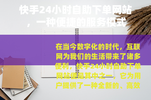 在当今数字化的时代,互联网为我们的生活带来了诸多便利,快手24小时自助下单网站便是其中之一,它为用户提供了一种全新的、高效的下单体验,满足了不同用户在不同时间段的需求。
