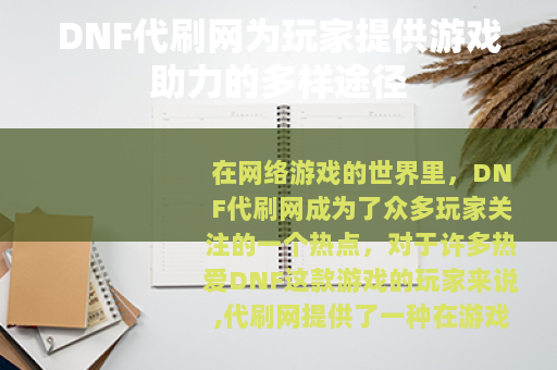 在网络游戏的世界里,DNF代刷网成为了众多玩家关注的一个热点,对于许多热爱DNF这款游戏的玩家来说,代刷网提供了一种在游戏中快速提升角色实力和获取资源的方式。