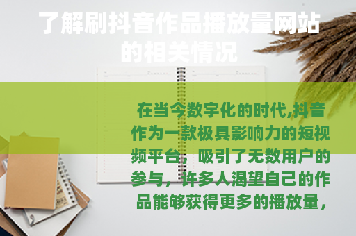 在当今数字化的时代,抖音作为一款极具影响力的短视频平台,吸引了无数用户的参与,许多人渴望自己的作品能够获得更多的播放量,从而在这个庞大的社交网络中获得更多的关注和认可,在这样的需求下,刷抖音作品播放量网站应运而生。
