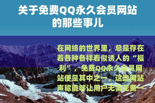 在网络的世界里,总是存在着各种各样看似诱人的“福利”,免费QQ永久会员网站便是其中之一,这些网站声称能够让用户无需花费一分钱,就能享受到QQ会员的所有特权,而且是永久有效的,这对于广大QQ用户来说,无疑具有巨大的吸引力。