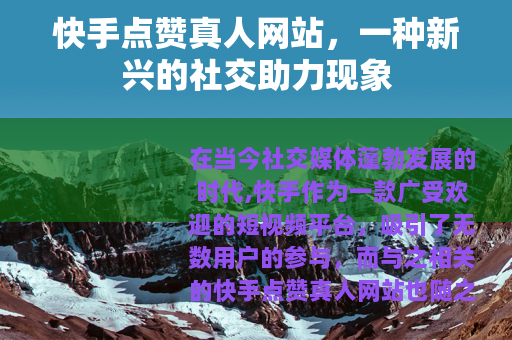 在当今社交媒体蓬勃发展的时代,快手作为一款广受欢迎的短视频平台,吸引了无数用户的参与,而与之相关的快手点赞真人网站也随之兴起,成为了一个备受关注的话题。
