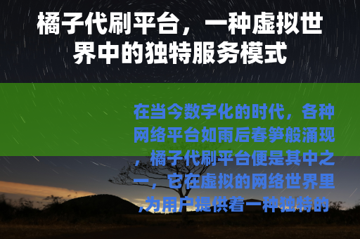 在当今数字化的时代,各种网络平台如雨后春笋般涌现,橘子代刷平台便是其中之一,它在虚拟的网络世界里,为用户提供着一种独特的服务体验。