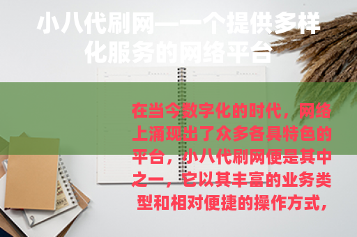 在当今数字化的时代,网络上涌现出了众多各具特色的平台,小八代刷网便是其中之一,它以其丰富的业务类型和相对便捷的操作方式,吸引了不少用户的关注。