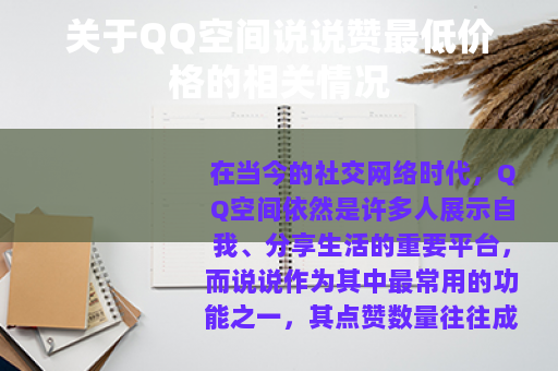 在当今的社交网络时代,QQ空间依然是许多人展示自我、分享生活的重要平台,而说说作为其中最常用的功能之一,其点赞数量往往成为了人们关注的焦点,很多人都希望自己的说说能获得更多的赞,以体现自己的人气和所分享内容的受欢迎程度,就出现了关于QQ空间说说赞的各种服务,其中就包括了所谓的最低价格的说说赞服务。