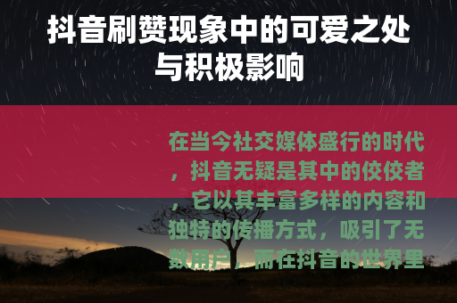 在当今社交媒体盛行的时代,抖音无疑是其中的佼佼者,它以其丰富多样的内容和独特的传播方式,吸引了无数用户,而在抖音的世界里,刷赞这一行为也逐渐成为了一个备受关注的现象,虽然刷赞在某些方面可能存在争议,但我们也不能忽视其中所展现出的可爱之处。