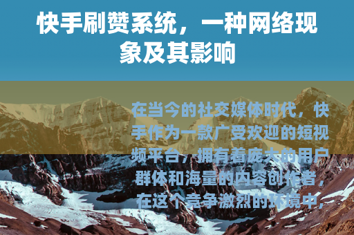 在当今的社交媒体时代,快手作为一款广受欢迎的短视频平台,拥有着庞大的用户群体和海量的内容创作者,在这个竞争激烈的环境中,快手刷赞系统逐渐成为了一个备受关注的话题。