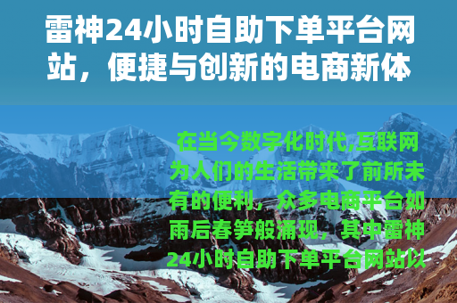 在当今数字化时代,互联网为人们的生活带来了前所未有的便利,众多电商平台如雨后春笋般涌现,其中雷神24小时自助下单平台网站以其独特的服务模式吸引了众多用户的关注。