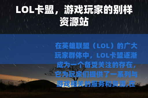 在英雄联盟(LOL)的广大玩家群体中,LOL卡盟逐渐成为一个备受关注的存在,它为玩家们提供了一系列与游戏相关的服务和资源,在一定程度上丰富了玩家们的游戏体验。