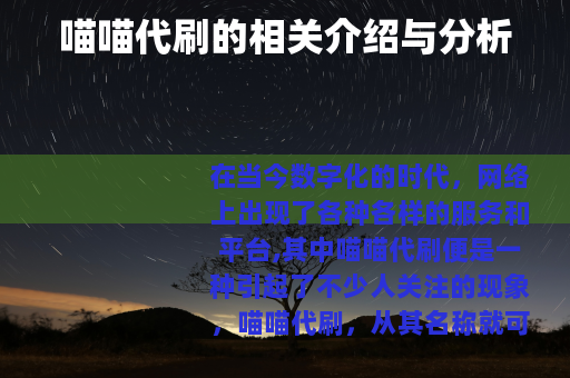 在当今数字化的时代,网络上出现了各种各样的服务和平台,其中喵喵代刷便是一种引起了不少人关注的现象。