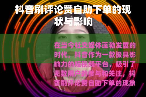 在当今社交媒体蓬勃发展的时代,抖音作为一款极具影响力的短视频平台,吸引了无数用户的参与和关注,抖音刷评论赞自助下单的现象逐渐兴起,成为了一个值得探讨的话题。