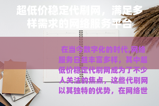 在当今数字化的时代,网络服务日益丰富多样,其中超低价稳定代刷网成为了不少人关注的焦点,这些代刷网以其独特的优势,在网络世界中占据了一席之地,为用户提供了诸多便利和价值。