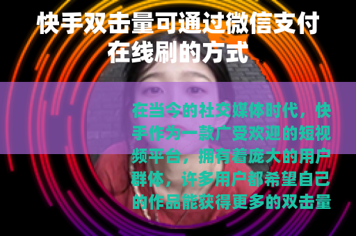在当今的社交媒体时代,快手作为一款广受欢迎的短视频平台,拥有着庞大的用户群体,许多用户都希望自己的作品能获得更多的双击量,以此来提升自己在平台上的人气和影响力,而如今,有一种方式可以通过在线刷双击量来实现这一目标,并且支持微信支付。