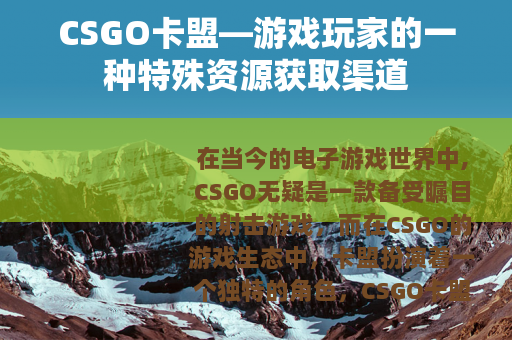 在当今的电子游戏世界中,CSGO无疑是一款备受瞩目的射击游戏,而在CSGO的游戏生态中,卡盟扮演着一个独特的角色。