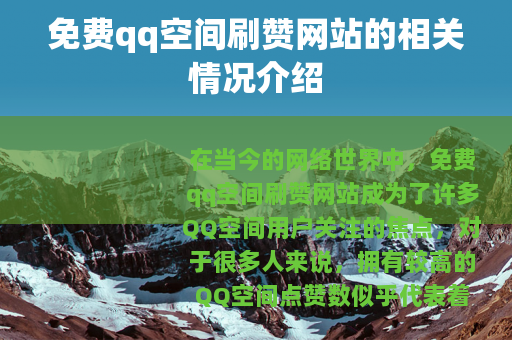 在当今的网络世界中,免费qq空间刷赞网站成为了许多QQ空间用户关注的焦点,对于很多人来说,拥有较高的QQ空间点赞数似乎代表着自己的空间更受欢迎,能获得更多的关注和认可。