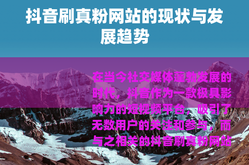 在当今社交媒体蓬勃发展的时代,抖音作为一款极具影响力的短视频平台,吸引了无数用户的关注和参与,而与之相关的抖音刷真粉网站也在悄然兴起,成为了一个备受瞩目的话题。