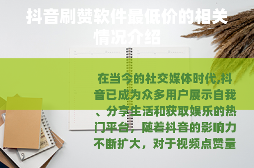 在当今的社交媒体时代,抖音已成为众多用户展示自我、分享生活和获取娱乐的热门平台,随着抖音的影响力不断扩大,对于视频点赞量的关注也日益增加,这也使得市场上出现了各种各样声称能提供抖音刷赞服务的软件,其中不乏一些打着最低价旗号的产品。
