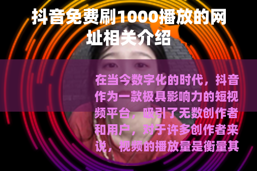 在当今数字化的时代,抖音作为一款极具影响力的短视频平台,吸引了无数创作者和用户,对于许多创作者来说,视频的播放量是衡量其作品受欢迎程度的一个重要指标,不少人在寻找各种方法来提高自己抖音视频的播放量,而抖音免费刷1000播放的网址也成为了一些人关注的焦点。