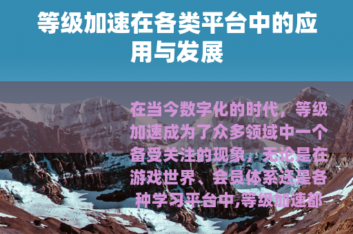 在当今数字化的时代,等级加速成为了众多领域中一个备受关注的现象,无论是在游戏世界、会员体系还是各种学习平台中,等级加速都有着重要的意义和广泛的应用。