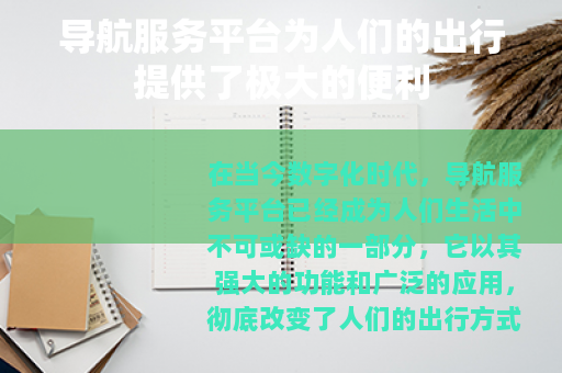 在当今数字化时代,导航服务平台已经成为人们生活中不可或缺的一部分,它以其强大的功能和广泛的应用,彻底改变了人们的出行方式,为人们的生活带来了前所未有的便利。