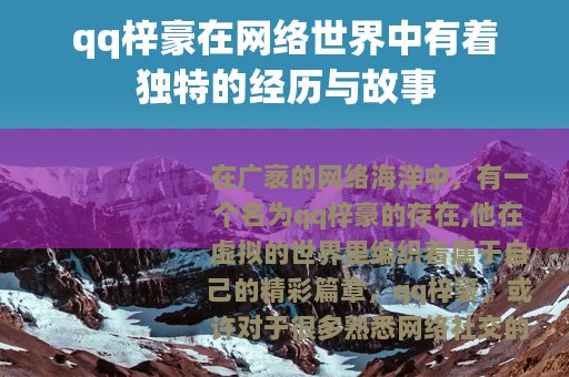 在广袤的网络海洋中,有一个名为qq梓豪的存在,他在虚拟的世界里编织着属于自己的精彩篇章。