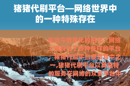 在当今数字化的时代,网络上涌现出了各种各样的平台,猪猪代刷平台便是其中之一,猪猪代刷平台以其独特的服务在网络的众多平台中占据了一席之地。