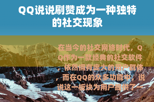 在当今的社交网络时代,QQ作为一款经典的社交软件,依然拥有庞大的用户群体,而在QQ的众多功能中,说说这一板块为用户提供了一个展示自我、分享生活点滴的平台,随着社交需求的不断发展,QQ说说刷赞也逐渐成为了一种备受关注的现象。