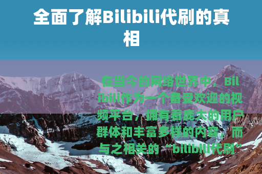 在当今的网络世界中,Bilibili作为一个备受欢迎的视频平台,拥有着庞大的用户群体和丰富多样的内容,而与之相关的“bilibili代刷”现象也逐渐引起了人们的关注。
