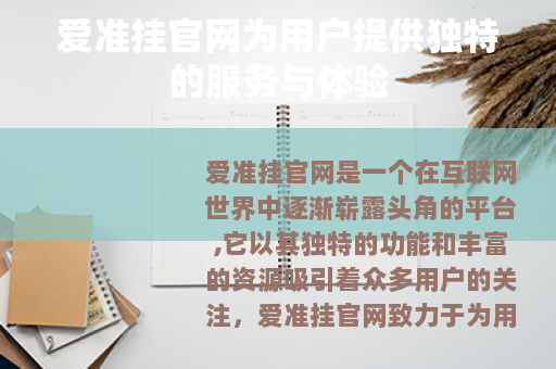 爱准挂官网致力于为用户打造一个便捷、高效的服务环境,在这个官网上,用户可以轻松找到各种与自身需求相关的信息和工具,无论是学习资料的查询,还是生活中各类实用信息的获取,爱准挂官网都能提供有力的支持。