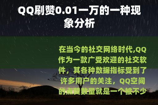 在当今的社交网络时代,QQ作为一款广受欢迎的社交软件,其各种数据指标受到了许多用户的关注,QQ空间的点赞数量就是一个被不少人看重的方面,于是便出现了像“qq刷赞0.01一万”这样的服务。