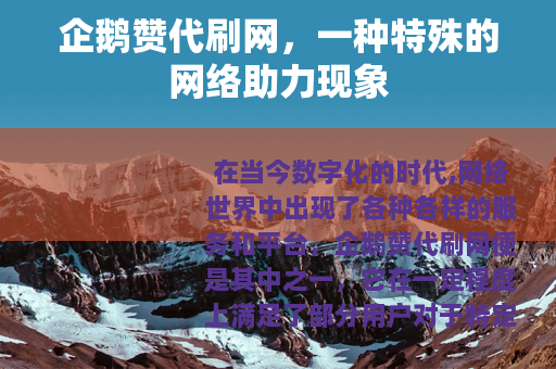 企鹅赞代刷网是网络时代的一个特殊产物,它既有着满足用户需求的一面,也有着可能带来负面影响的一面,我们需要以一种客观、理性的态度去看待它,既要认识到它存在的合理性,也要关注到它可能引发的问题,从而在网络社交的发展中找到一种更加平衡和可持续的发展路径。