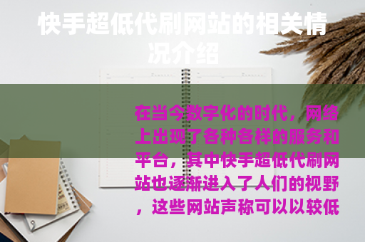 在当今数字化的时代,网络上出现了各种各样的服务和平台,其中快手超低代刷网站也逐渐进入了人们的视野,这些网站声称可以以较低的价格为用户提供快手相关的数据代刷服务,比如点赞数、评论数、粉丝量等等。