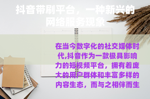 在当今数字化的社交媒体时代,抖音作为一款极具影响力的短视频平台,拥有着庞大的用户群体和丰富多样的内容生态,而与之相伴而生的,是一种被称为抖音带刷平台的服务模式,它在网络世界中逐渐崭露头角,引起了众多人的关注。