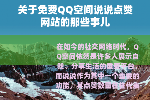 在如今的社交网络时代,QQ空间依然是许多人展示自我、分享生活的重要平台,而说说作为其中一个重要的功能,其点赞数量往往代表着该条说说的受欢迎程度,为了让自己的说说获得更多的关注和点赞,不少人开始寻找各种途径,其中免费的QQ空间说说点赞网站就受到了很多人的青睐。