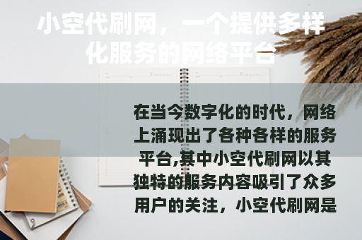 在当今数字化的时代,网络上涌现出了各种各样的服务平台,其中小空代刷网以其独特的服务内容吸引了众多用户的关注。