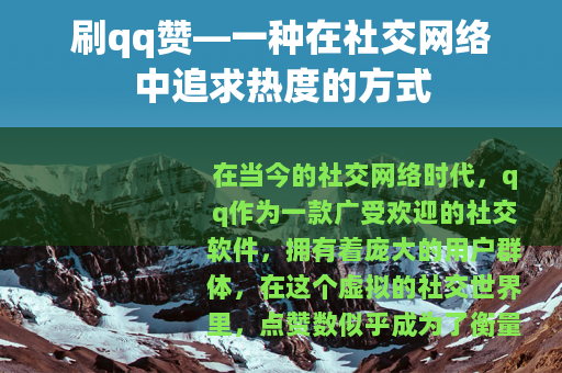 在当今的社交网络时代,qq作为一款广受欢迎的社交软件,拥有着庞大的用户群体,在这个虚拟的社交世界里,点赞数似乎成为了衡量一个人或一件事物受欢迎程度的重要指标之一,刷qq赞这种行为应运而生。