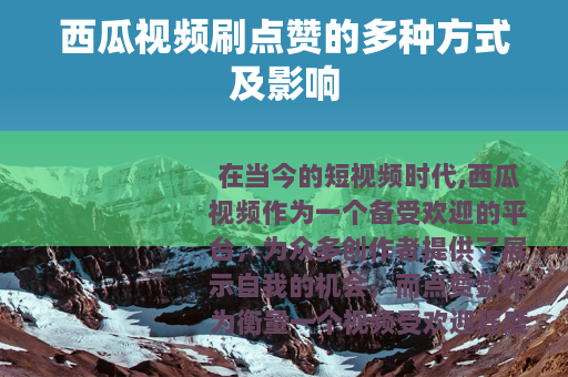 西瓜视频刷点赞是一个具有两面性的现象,它既可能给创作者带来一时的利益和关注,但也可能带来长期的负面影响和风险,创作者和观众都应该正确看待点赞数这一指标,共同努力让西瓜视频平台更加健康、繁荣地发展下去。