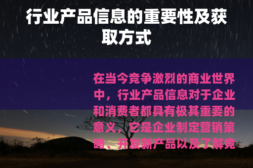 在当今竞争激烈的商业世界中,行业产品信息对于企业和消费者都具有极其重要的意义,它是企业制定营销策略、开发新产品以及了解竞争对手的关键依据,同时也是消费者做出明智购买决策的重要参考。