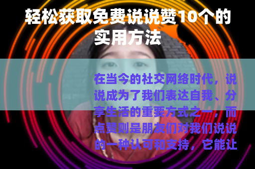 通过不断地实践和探索,运用各种有效的方法,获得免费说说赞10个是完全可以实现的,并且还能为你的社交生活带来诸多的好处和乐趣,让我们一起努力,在社交网络的世界里,用精彩的说说和众多的点赞,书写属于自己的社交篇章,让自己的声音被更多的人听到,让自己的生活被更多的人关注和喜爱。 对您有所帮助,您可以根据实际情况进行调整和修改,如果您还有其他需求,请随时告诉我。