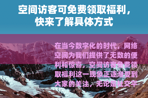 在当今数字化的时代,网络空间为我们提供了无数的便利和惊喜,空间访客免费领取福利这一现象正逐渐受到大家的关注,无论是社交平台的个人空间,还是各种网站的特定区域,都可能存在着这样的机会,让访客们能够免费获得各种有趣的东西。