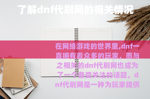 在网络游戏的世界里,dnf一直拥有着众多的玩家,而与之相关的dnf代刷网也成为了一个备受关注的话题。