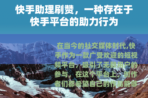 在当今的社交媒体时代,快手作为一款广受欢迎的短视频平台,吸引了无数用户的参与,在这个平台上,创作者们都希望自己的作品能够获得更多的关注和点赞,从而提升自己的影响力和知名度,而快手助理刷赞,便在这样的背景下应运而生。