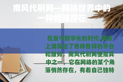 在当今数字化的时代,网络上涌现出了各种各样的平台和服务,南风代刷网便是其中之一,它在网络的某个角落悄然存在,有着自己独特的运营模式和用户群体。
