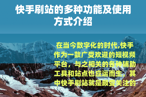 在当今数字化的时代,快手作为一款广受欢迎的短视频平台,与之相关的各种辅助工具和站点也应运而生,其中快手刷站就是颇受关注的一种。