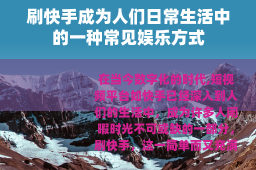 在当今数字化的时代,短视频平台如快手已经深入到人们的生活中,成为许多人闲暇时光不可或缺的一部分,刷快手,这一简单而又充满乐趣的行为,正以其独特的魅力吸引着越来越多的用户。