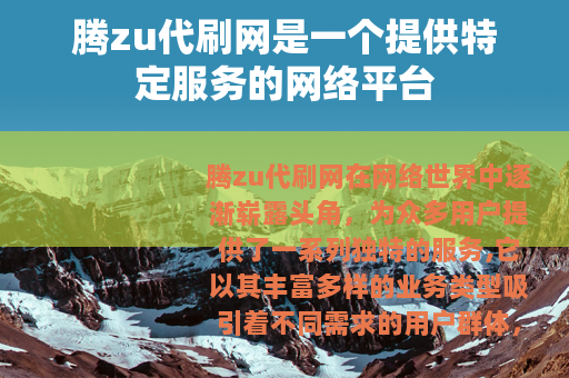 腾zu代刷网在网络世界中逐渐崭露头角,为众多用户提供了一系列独特的服务,它以其丰富多样的业务类型吸引着不同需求的用户群体。