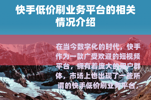 在当今数字化的时代,快手作为一款广受欢迎的短视频平台,拥有着庞大的用户群体,市场上也出现了一些所谓的快手低价刷业务平台,这些平台声称可以以较低的价格为用户提供各种快手业务的刷量服务,如粉丝增长、点赞量提升、评论数增加等。