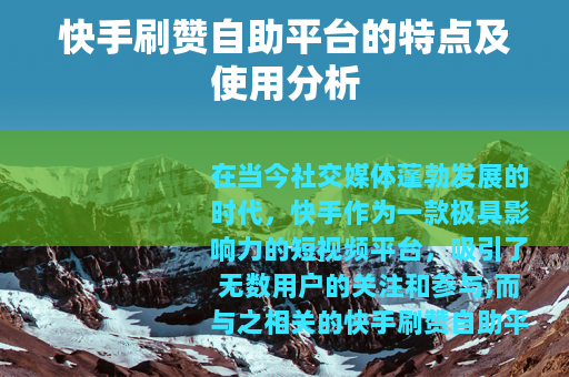 在当今社交媒体蓬勃发展的时代,快手作为一款极具影响力的短视频平台,吸引了无数用户的关注和参与,而与之相关的快手刷赞自助平台也逐渐进入了人们的视野。