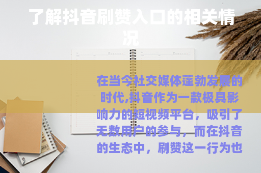 在当今社交媒体蓬勃发展的时代,抖音作为一款极具影响力的短视频平台,吸引了无数用户的参与,而在抖音的生态中,刷赞这一行为也逐渐受到了一些人的关注,关于抖音刷赞入口也成为了一个热门话题。