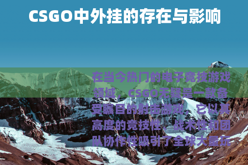 在当今热门的电子竞技游戏领域,CSGO无疑是一款备受瞩目的射击游戏,它以其高度的竞技性、战术性和团队协作性吸引了全球大量玩家的参与,在这个充满激情与挑战的游戏世界中,外挂问题却如同一个阴影,始终笼罩着部分玩家的游戏体验。
